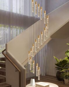 - Placement: Due to its grand, multi-meter height (often adjustable up to 20 feet or more), it is designed as a statement piece for large spaces such as entryways, foyers, and staircases in luxury homes or commercial lobbies.
